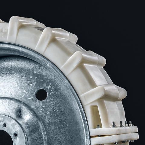 US Patent design. The first plastic tire developed for center pivot applications. Innovation in development and on-going improvements in manufacturing through the years has made them the most widely demanded products to come along in years.